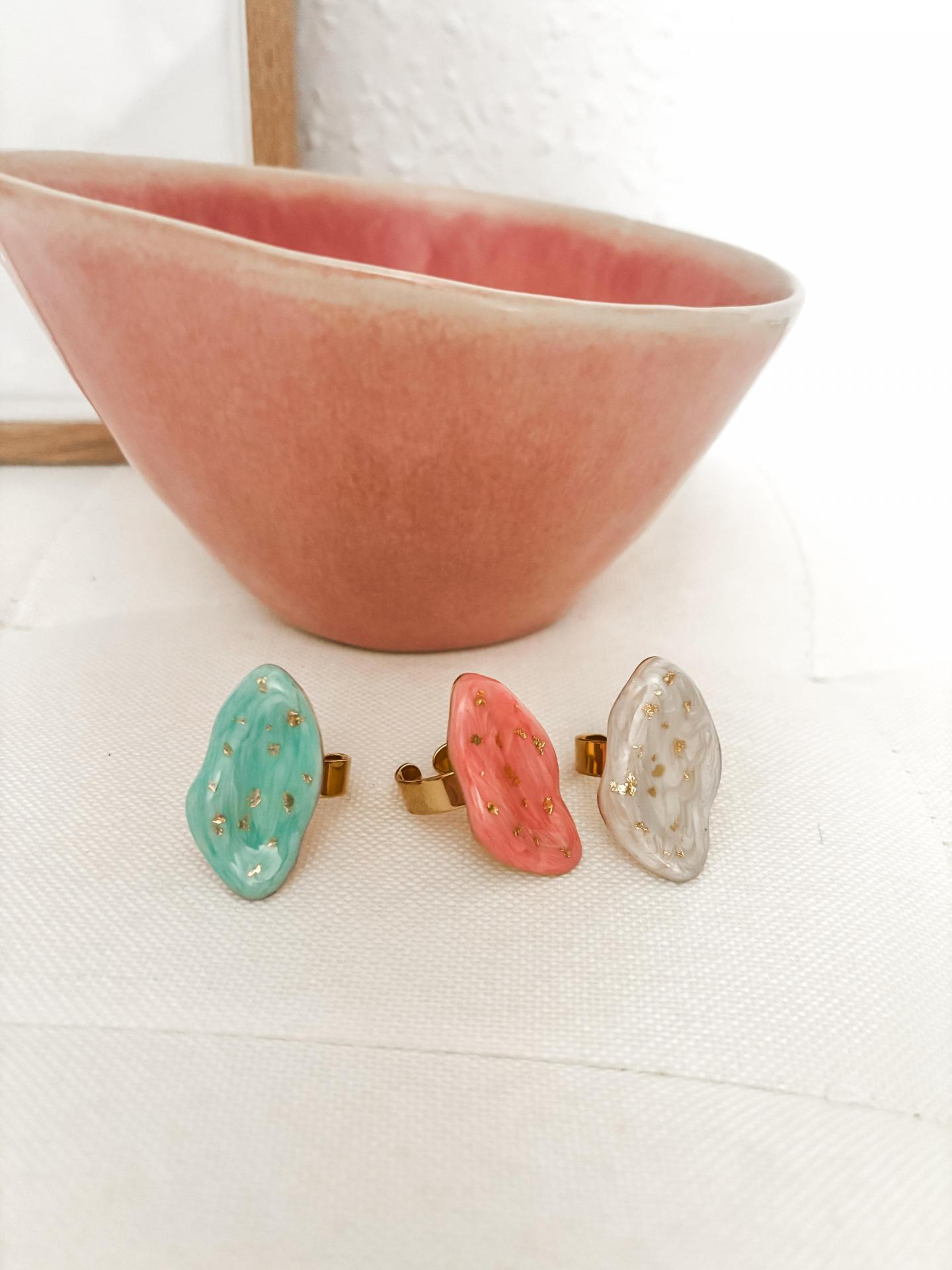 Piedra natural, esmaltada y con detalles en acero dorado.
