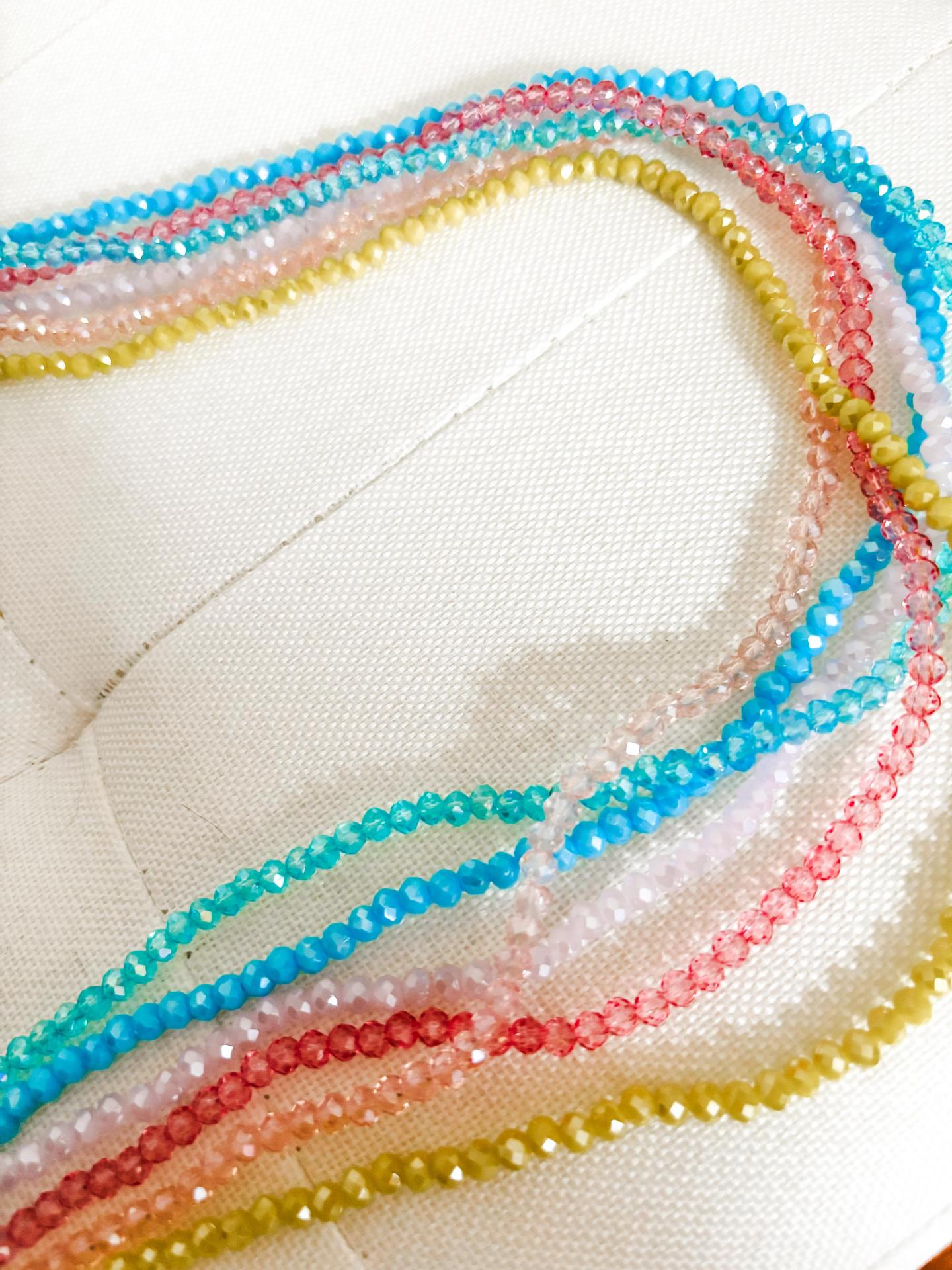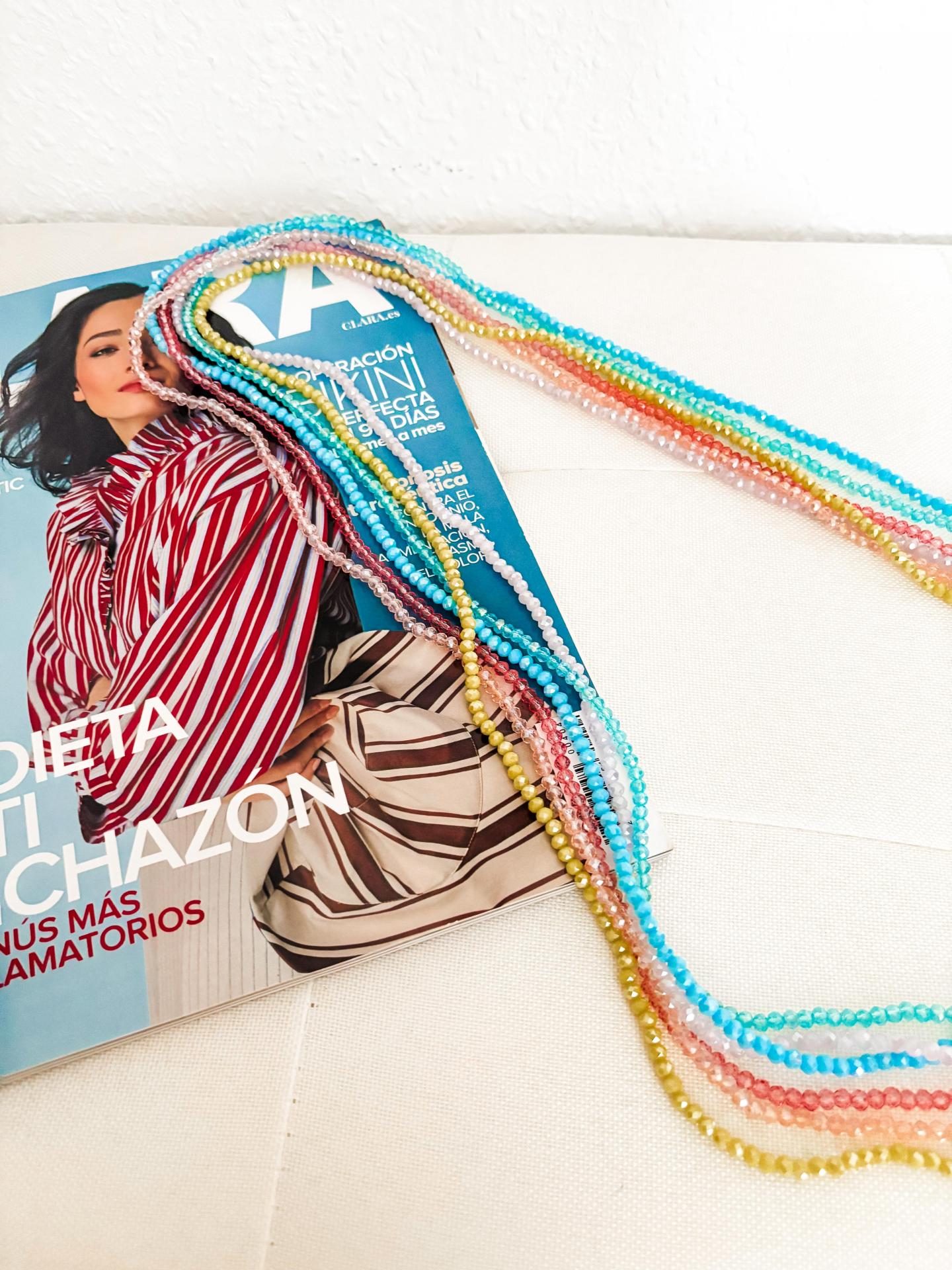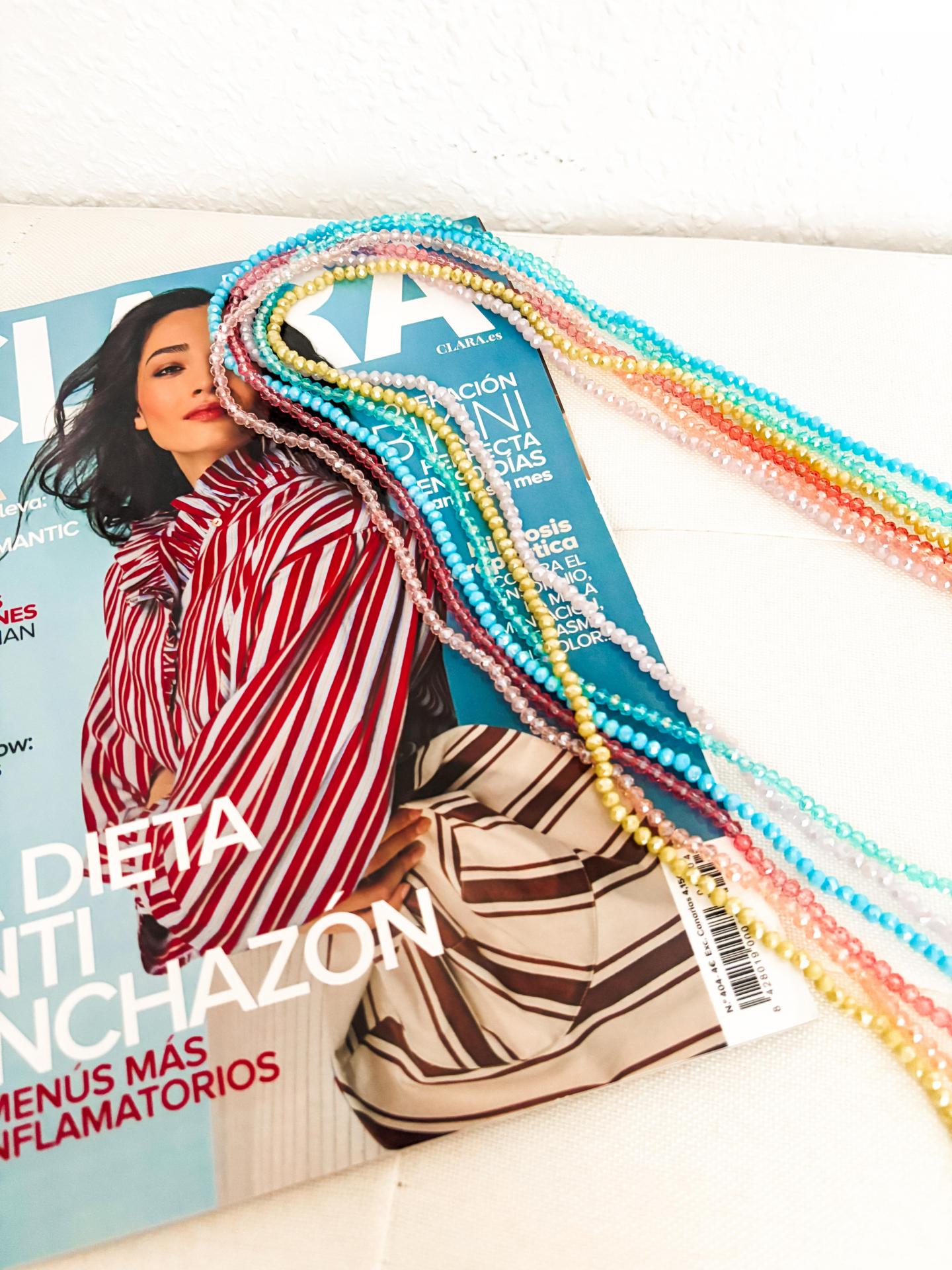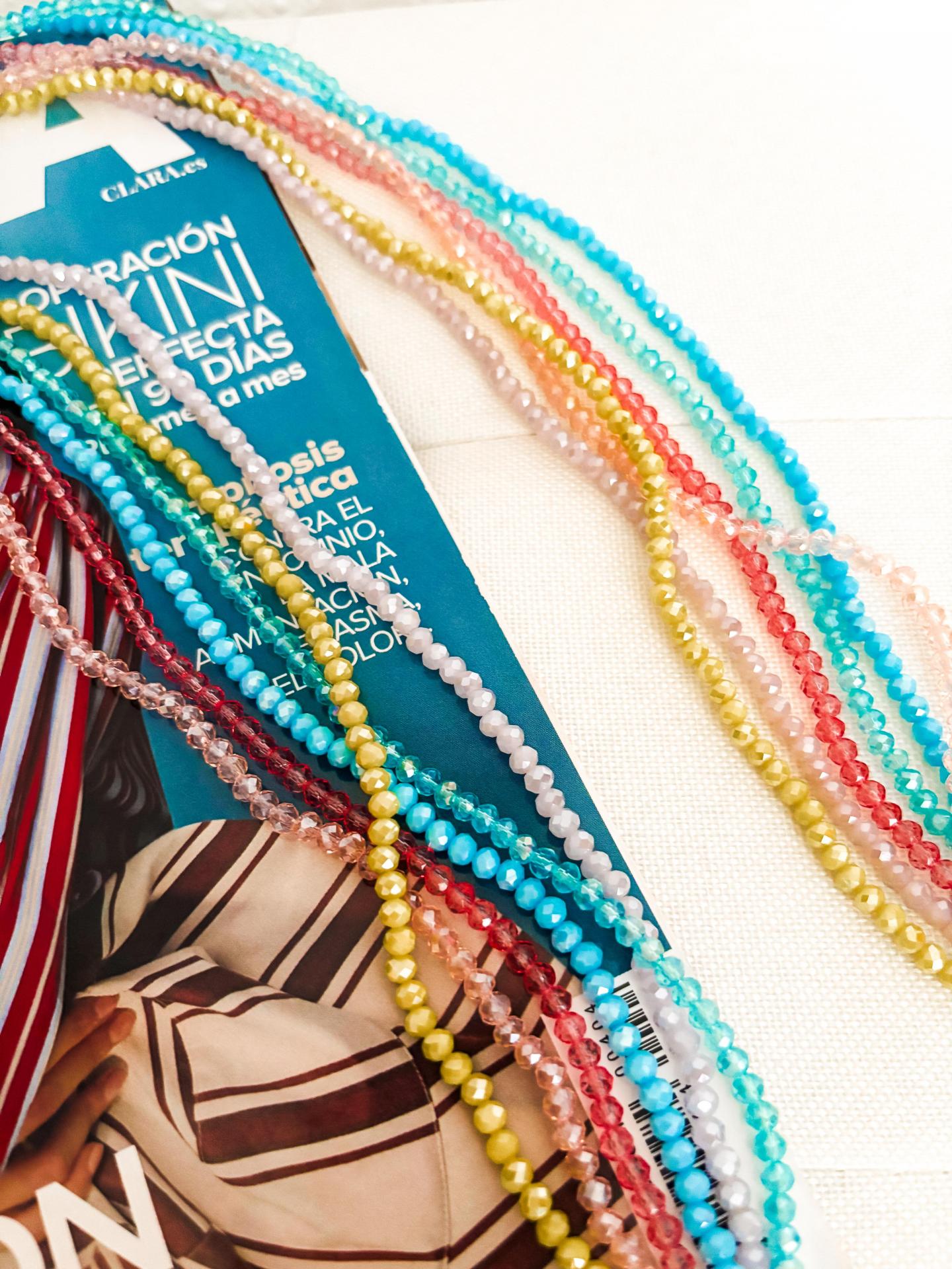 Tonos: azul, amarillo, turquesa, rosa claro, lila, rosa oscuro.